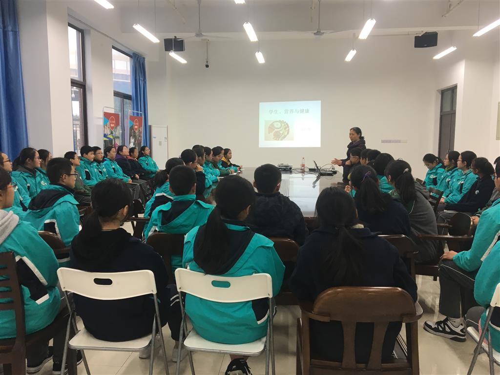 20181123日下午第四节课,翠中学生会主席团干部带领七、八年级部分学生聆听来自妇幼保健院蒋医生的食品与健康讲座。