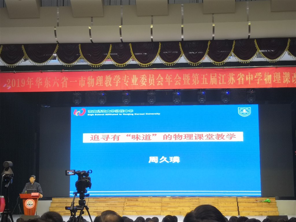12月11日至12日,2019年“华东六省一市物理教学专业委员会年会暨第五届江苏省中学物理课改论坛”在江苏丹阳华南实验学校隆重举行。活动由江苏省中小学教学研究室、江苏省教育学会物理教学专业委员会联合主办,来自六省市的物理教研员及教师代表出席了本次大会。与会代表们听取了数场高水平的专家报告,互相交流和分享了物理课堂教学的成果与经验。 翠竹中学两位物理教师有幸作为常州教师代表参与了此次活动,短短两天时间听取了专家报告、课堂展示及评课、科学实验表演等。“专家报告”周久璘老师告诉我们要追寻有“味道”的物理课堂教学,他说好的课堂应当是一道美食,引诱学生来听,周老师从“有新意、有美感、有品位、有韵味、有回味”等四个方面阐述了如何制成课堂这道美食,良久有余味,始觉甘如饴,回味是味道的最高境界,一节好的课堂,应当是言已过往,意却未尽。“课堂教学展示”两位老师听取了来自上海陈老师的《运动相对性》,课堂新颖有趣,通过多个小游戏进行师生互动、生生活动;《电流热效应》我们看到了设计巧妙、制作精良的实验器材,感叹老师的实验能力高深强大!在点评环节南京市物理教研员为与会教师指出:方向比努力更重要,强调了课堂板书设计以及如何能让教学在课堂真正发生的重要性。“科学表演”和“课改经验分享”让老师们大开眼界,惊叹优秀教师的智慧与钻研精神。 这一次饕餮盛宴让参会老师大呼过瘾,不虚此行,培训已经结束了,但培训内容的学习并没有结束,消化报告内容,品味其中奥妙,取长补短增进自己的专业水平是老师们今后的努力方向。 撰稿:王萍 拍摄:王萍 审核:陈丽