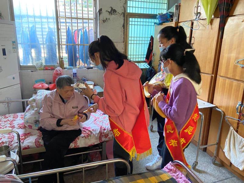 2020年10月25日,翠竹中学的小小志愿者们在学校老师的带领下,一起前往金南山养老院, 开展“九九重阳节孝心献老人”感恩教育活动。在金南山老院,学生们依次列队,为老人们送上精心准备的慰问礼品。师生们还陪老人聊天,为老人捶背、表演节目、打扫卫生并送上水果,以实际行动践行和弘扬尊老敬老传统美德。 撰稿拍摄:尹奕佳 附学生感悟两篇: 1、在重阳节来临之际,我们在学校团委的组织下,一起去金南山养老院看望那里的爷爷奶奶们。我们带上学生志愿者的授带,恭恭敬敬的走进了养老院。我手捧香蕉与两位同学和老师进园子,给爷爷奶奶送吃的,看见园子里有许多爷爷奶奶已经起床了,他们有的在嗑瓜子,有的在散步,我慢慢走上前去端下一个香蕉,递给一位奶奶,在她接过的那一瞬间,我看到了奶奶那双粗糙的手布满了皱纹。这都是岁月留下的痕迹啊!我不禁想起了自己的爷爷奶奶,他们的双手一定也是如此,由此,我想在重阳节呼吁所有年轻的人关心、爱护、孝顺老人,不让他们操心,有时间也多陪陪家人。祝全天下所有的老人们阖家团圆,喜乐安康。 七(1)彭雪尔 2、在重阳节去敬老院慰问老人这一心愿终于在来到翠竹中学后的第一个重阳节实现了。七一班和八班的部分队员来到“金南山老人院”慰问老人。 学校与同学们用心准备了水果,牛奶,饼干等。大家迎着朝阳迈进了“金南山老人院”。我们随着团队来到一个小房间,放下礼物进行分组。一半同学去慰问老人,一半同学帮忙打扫院落。我跟随老师们去慰问老人,那里的老人可真不少,在这特殊的日子里,大家都满面荣光,热情地招待我们。大家一个个的慰问过去“奶奶,重阳节快乐”“爷爷,祝您身体健康,天天开心”,说着,递过水果,点心。他们笑着接过,“谢谢,谢谢”地说个不停。有些老人还没有起来,我们便轻轻的进去,悄悄地把东西放在床头柜上。我们就如同他们的家人般关爱他们,他们也把我们当作孙女,孙子般看待。 回到院落里,我和其他同学们一起加入了打扫的队伍,把枯枝,树叶扫走,一个崭新,充满阳光的养老院浮现在眼前。 我们的活动结束了,在这特殊的节日里能给这些老人们带来温暖,做一些力所能及的事情是最大的快乐,最后祝普天下的爷爷奶奶们重阳节快乐,身体健康,万事如意。 七(1)王柯楠