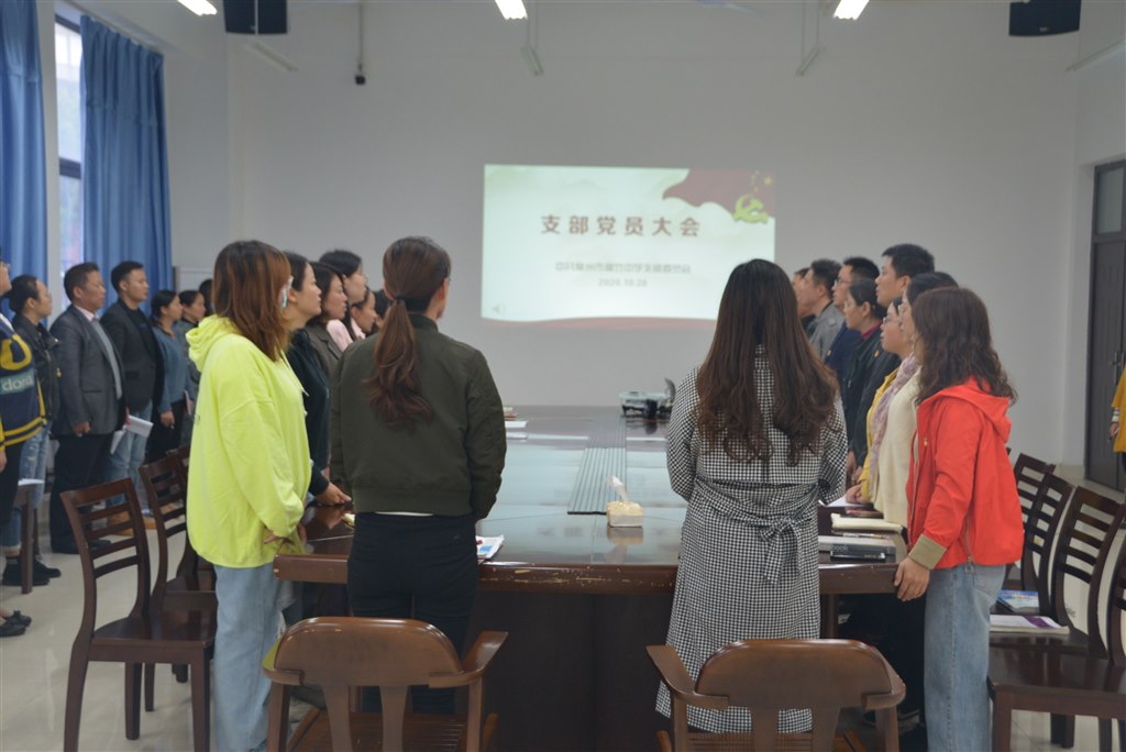 常州市翠竹中学党支部于2020年10月28日下午,在会议室召开接受柏佩婷同志为中共预备党员大会,会议由周贵兴书记主持,全体党员出席参加。 本次会议是严格按照组织程序,在经过组织考察、政治审查、广泛听取党内外群众意见的基础上,经市委教育工委批准后如期召开的支部大会。 会议开始由屠国斌副校长向大会介绍申请人柏佩婷同志接受党组织培养、考察情况,随后柏佩婷同志就本人的基本情况、入党动机,对党的认识等需要向党组织说明的问题向大会进行了汇报,紧接着尹翔翔老师和陈丽老师作为柏佩婷同志的入党介绍人对培养过程中的事项和申请人的表现向支部大会做了介绍及评价,陈述了自己的意见。在党支部委员会纪检委员丁文黎副校长报告对申请人柏佩婷的审查情况后参会的全体党员本着认真负责的态度对发展对象能否入党进行充分讨论,现场出席的有表决权利的42名党员采用无记名投票的方式进行了表决,一致同意接收柏佩婷同志为中共预备党员。 会议最后,陈校长代表支部做重要讲话,陈校长对柏佩婷同志顺利加入党组织表示祝贺,并对柏佩婷同志未来的发展提出了中肯的希望和建议,同时对在各个岗位尽职尽责的全体党员同志们表示感谢,期待全体翠竹先锋团结一致,凝心聚力,发挥榜样示范作为,共同为翠竹未来的辉煌发展做出努力。 撰稿:储学敏 拍摄:田盈 审核:宋华燕