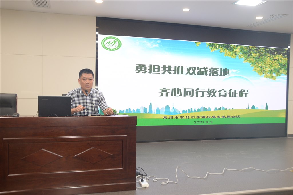 勠力同心,奋楫笃行。9月3日下午,常州市翠竹中学召开“双减”工作第二次推进会,会议由课程发展处卫萍主任主持,陈文伟校长、丁文黎副校长、屠国斌副校长莅临现场。