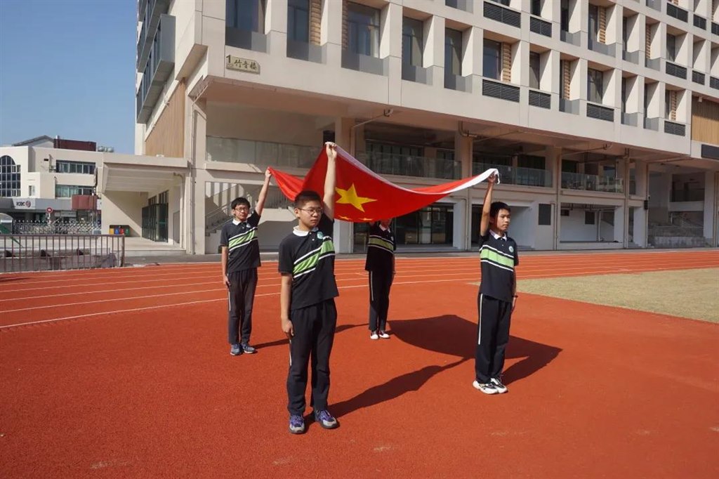 同学们深感骄傲与自豪,纷纷举起国旗,露出灿烂的笑容,与国旗合影,记录并传递最美的景象。