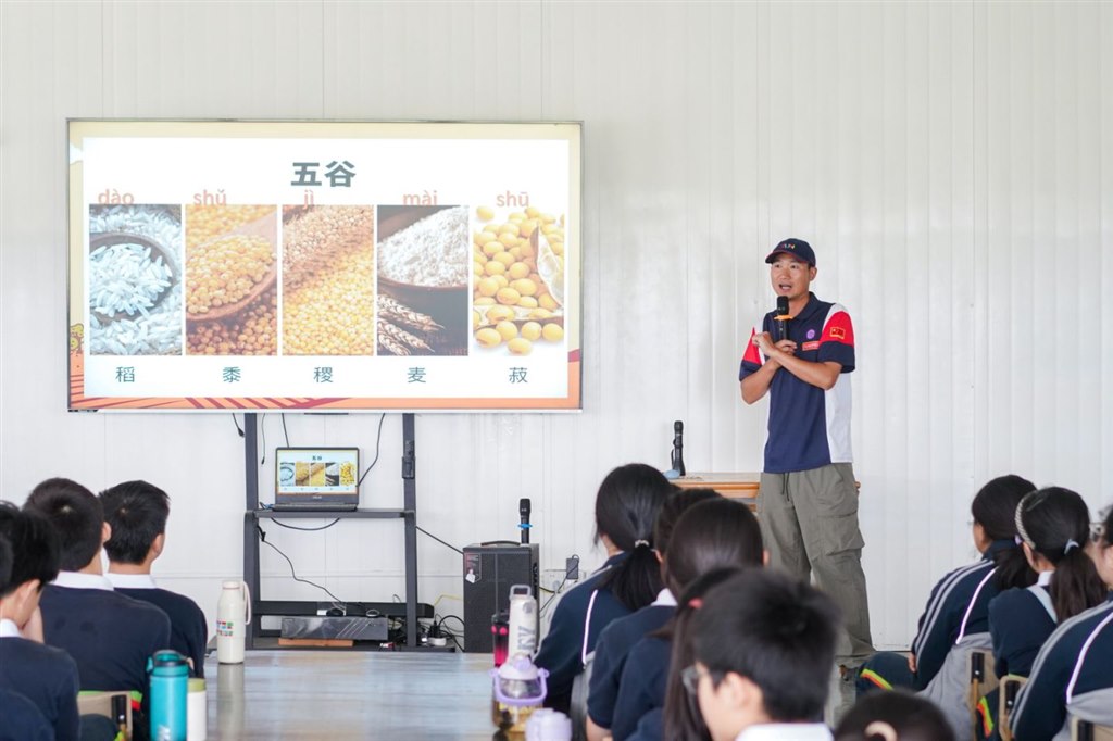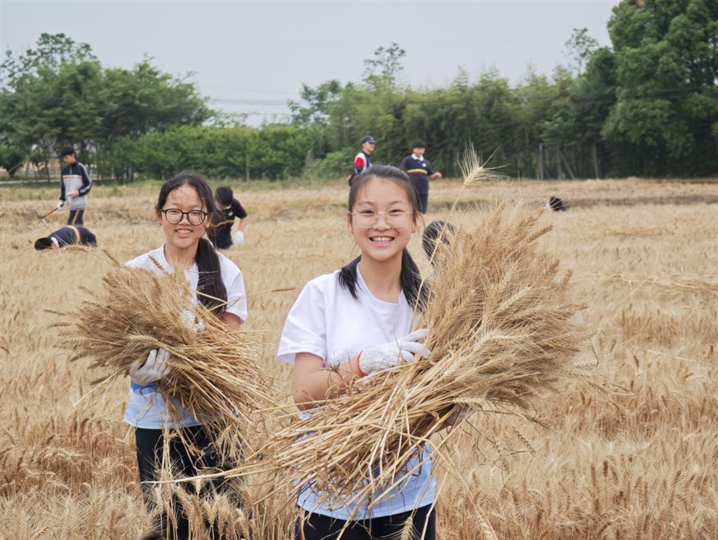 芒种忙种,有收有种,在这样一个播种与收获并存的季节,翠竹中学七年级的同学们走进我校劳动基地——郭鲁合作社,开启了一场别开生面的农业主题劳动研学。 一下车,映入眼帘的是崭新高大的现代化农机、广袤无垠的金色麦田……混合着泥土与青草的独特芬芳扑面而来。怀揣着兴奋与好奇,同学们沉浸在一站式农学课堂中:探秘小麦的生命周期,见识前沿的农业科技,动手育苗春秧,体验麦穗收割,巧手制作麦秆画。理论融入实践,古今农技碰撞,创意点缀生态,汗水浇灌成长,同学们在躬耕中体悟着大地的深情厚谊。 骄阳似火,暑气蒸腾,却丝毫未能减退同学们如夏日般炽热的热情。各班分工协作,默契十足:松土的专注,育秧的细致,收割的辛劳……交织成一幅生动的农忙图景。成功的喜悦在每一张笑脸上绽放,颗颗汗珠滴落田间,在翠绿叶尖上折射出青春与劳动的光芒! 风吹麦浪,正是成长的课堂。让我们亲近泥土,聆听大地的低语——