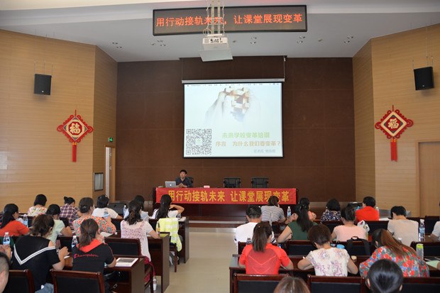 8月23日,翠竹中学全体教职工汇聚二十四中天宁分校会议室,开展为期一天的暑期校本培训。新的学年,翠竹中学迎来了老校园翻建,虹景中学过渡的特殊时期。新的环境,新的机遇,新的挑战,眼前在发展与变化,未来的美好可期。“用行动接轨未来,让课堂展现变革”为主题的暑期校本培训无疑是为每个翠中人注入了强心剂,指引了前行的方向。 本次校本培训请来了上海思来氏公司的姚伟俊老师,他就未来学校的变革为全体教职工带来了一次新理念的洗礼。 变革——用行动接轨现实 姚老师从“我们为什么要变革”这个话题开始,漫谈社会变迁变迁与新技术的引入将给教育行业带来深刻的冲击。一个问题令所有老师陷入深思:我们如何能用昨天的知识,教会今天的学生,去迎接明天的挑战?姚老师介绍道,未来教师需要具备两大能力:与技术融合的能力、研究与创新能力。具备这两大能力,让教育实现现代化! 课堂——用变革面对挑战 课堂是教学的主阵地,教育的现代化的实现在课堂上如何呈现呢?姚老师用一系列生动真实的案例展现了新技术在课堂上的应用给课堂带来的质的改变。上海六一小学的翻转课堂实验给老师安排学生自学以启示;北京十一学校历史课堂的改革则侧重于用技术提升批判性思维的培养,而这样的课堂对老师提出了更大的挑战。每位教职工认真聆听,积极思考,用摆个的课堂迎接教育现代化的挑战。 短暂而充实的一天培训结束,每个翠中人在倾听中学习,在学习中思考与质疑,在思考中前进。就在不远处,现代化的翠竹中学正在招手,每个翠中人在不断学习与提升中以崭新的姿态,满怀梦与期待,迎接翠竹中学的明天。