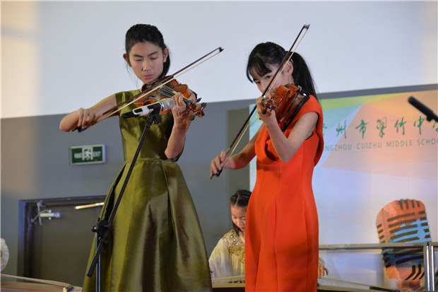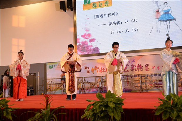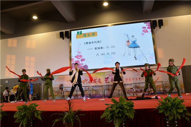 “竹壮成长,艺彩纷呈”艺术节文艺汇演已连续举办三届!这是一个学生们大显身手的舞台,主持、唱歌、跳舞、绘画、乐器……个个都秀出自己的才艺!这是一个彰显青春活力的舞台,无论是活力四射的歌舞,还是创意十足的小品年代秀,处处都展现了翠中学子们的无限创意!这是一个饱含真情的舞台,当艺术节遇上了20周年校庆,学生用青春朝气向学校送上祝福,老师们用默默付出对学校道一声感谢!最真、最美的祝福送给您——我们的翠竹中学!