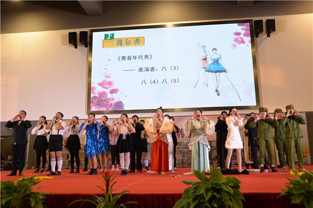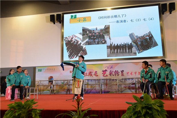 翠中二十载,我们从相片里看到时光划过的痕迹。八年级同学脑洞大开,用服装的变迁来展现时代的特色。从古时的汉服到近代旗袍中山装,再到上世纪的军装新时代的潮服,搭配逗趣的音乐,精彩的表演,让台下的观众笑声连连,捧腹不已心,掀起了演出的高潮。时光匆匆,蜘蛛侠也来到了舞台上,小品《时间去哪了》引得同学们不住的拍手称赞。