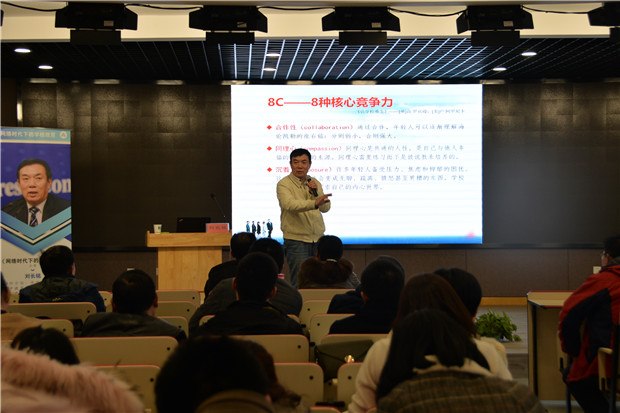 刘长铭校长和在座的翠中老师、教育局及兄弟学校老师分享了他的教育观——《信息时代的学校教育与教学》。刘长铭校长认为:并不是只有各科目都能拿到高分的学生才有培养价值,相反,一些杰出人才有各自独特的发展轨迹。他指出,现代人才观更为看中的8C(即8种核心竞争力)都不是在学校培养出来的。他还说,学习本应是一种充满乐趣与享受的情感交流与智力活动,但却被异化成冲击生命与智力极限的拼搏和残酷无情的竞争。