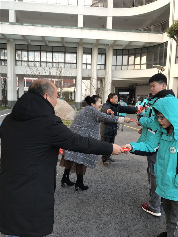 26日,一踏进翠竹中学校门,孩子们都领到了开学红包——红色包装的棒棒糖和步步糕。含了棒棒糖,身体棒棒哒;吃了步步糕,学业步步高。