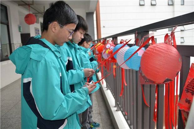 3月2日元宵节,常州市翠竹中学开展了轰轰烈烈的“闹元宵”活动。学校连廊装饰了学生自制的花灯,造型各异,色彩斑斓,为这团圆的节日更添一份喜庆。除了发动学生自己做花灯,学校还在主干道边挂上了灯笼和灯谜,组织学生以班级为单位,摆开摊位,举行义卖。学生们这边三两个,那边一小队,猜灯谜,吃元宵,逛小摊,整个学校洋溢着欢乐的节日气氛。
