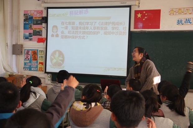 首先由在12月8日四校联合举行的校际交流公开课授课教师陈婷竹交流她的教学设计和课后反思。她指出本课主要目的是让八年级的学生明白14岁要承担哪些责任,难点是14岁要承担的法律责任。所以本节课主要是通过把七年级的四大保护以及八年级第七课对自己行为负责相关内容加以整合,帮助同学理解难点。围绕“如何实现教材生活化”这个研究主题,她积极收集运用班级学生的生活和身边的案例,引起了学生的共鸣和积极回应,课堂效果很好。
