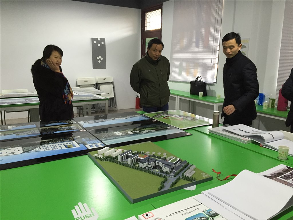 2016年1月25日,教育局纪局携计财处谢主任、胡主任来我校现场观摩三套(A\B\C)设计方案。学校汇报了设计方案的师生观摩情况和师生想法,局领导提出了专家意见和建议。
