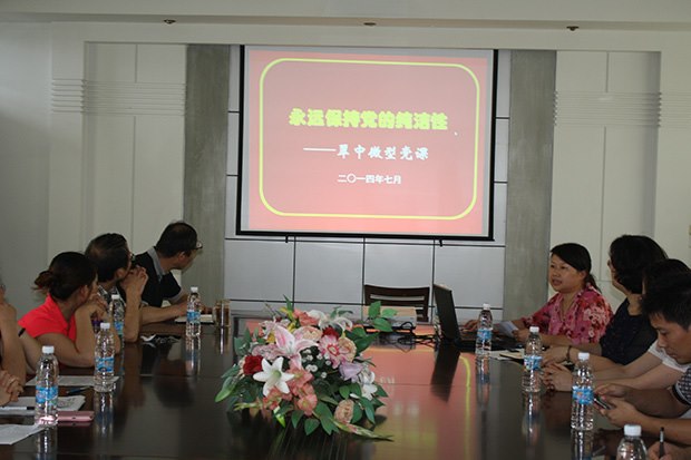 为庆祝中国共产党成立93周年,引导全体党员立足岗位创先争优,以扎实的工作作风和良好的工作业绩推动学校发展,根据中共常州市委教育工委党的群众路线教育实践活动领导小组《关于组织开展“牢记宗旨、服务群众”主题党日活动的通知》精神,7月2日下午1点,当教师们初享假期之暇,翠中所有党员民盟的同志们齐聚校四楼会议室,开启了紧凑而丰富多彩的主题党日活动之旅。 校党支部路云副书记主持了本次会议。会议分五个议程。路书记首先满怀深情地对刘芙蓉、韩慧娟、刘立萍、殷勤、解燕、邱裕琴等六位先进党员进行表彰,并对他们一年以来的创先争优精神给予了充分的肯定;第二议程为路书记的精彩微型党课——《永远保持党的纯洁》,在座各位党员认真聆听,细品微言大义。 第三议程地点“切换”至天合国际学校。党员民盟同志们兴致勃勃的在徐校长的带领下走进天合,一路参观学习,收获颇丰。徜徉在常州顶级国际学府之中,党员教师们对学校高端化的教育理念、国际化的教育课程设置、人性化的和教育举措和完美化的教育环境赞叹不已。教育是相通的,党员教师们意识到:在如今科技日新月异发展的新时代,教师的教育理念必须与时俱进,时刻更新,我们要保存好天堂的位置,用卓越的品质要求自己,用美好的情操丰富自己,用超然的心态说服自己,保持一种学习的状态,保持一种进取的姿态,努力做到:教书育人做楷模、创先争优当先锋、科学发展谋新篇! 最后,全体党员民盟老师们赴文化宫电影院观看了电影《黄土情》,结束了半天的活动。 假期,学校将继续推进基层服务型党组织建设,打通联系服务群众“最后一公里”。暑假每一位党员将结合自己的学科和特长,开展服务学生、服务学校,服务社会的活动。例如通过爱心资助团、社区亲子课堂、走近家庭活动、周末书院、心灵相约、党员护学岗、一日党员义工、为普通党员上一次党课、开展走访慰问困难党员群众等活动开展组团式服务,开展入学升学和家庭教育咨询、帮扶送教、阳光365义工活动等为民便民服务。 此次活动意义深远,它将成为加强党支部凝聚力和战斗力的有效方式。相信全体党员一定会激发出生机活力,以联系服务群众的有形行动和实际效果向党的生日献礼!(尹翔翔)