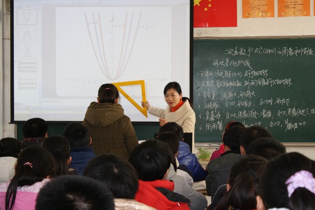 12月11日上午三四两节课,由教导处钱秋芬主任和季宏老师在听取专家建议,接受同伴互助后就函数这同一内容分别用九年级两个班再次开课。
